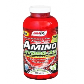 AMINO HYDRO 32 je extrémně silný aminokyselinový doplněk s téměř 77% obsahem čistých aminokyselin v 2000mg tabletě. Obsahuje velmi vysoké procento větvených aminokyselin BCAA a L-Glutamínu, velice významné složky, které působí při intenzivní zátěži jako ochrana svalů a podporují růst kvalitní svalové hmoty. Ideální pro všechny, kteří hledají kvalitní zdroj aminokyselin s maximálně rychlým vstřebáváním.
